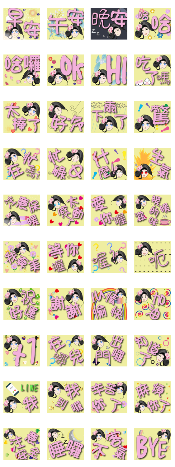 | スタンプ説明 | Daily Conversation with Big Characters-Peony Flower God-Pale Yellow Base Words |
