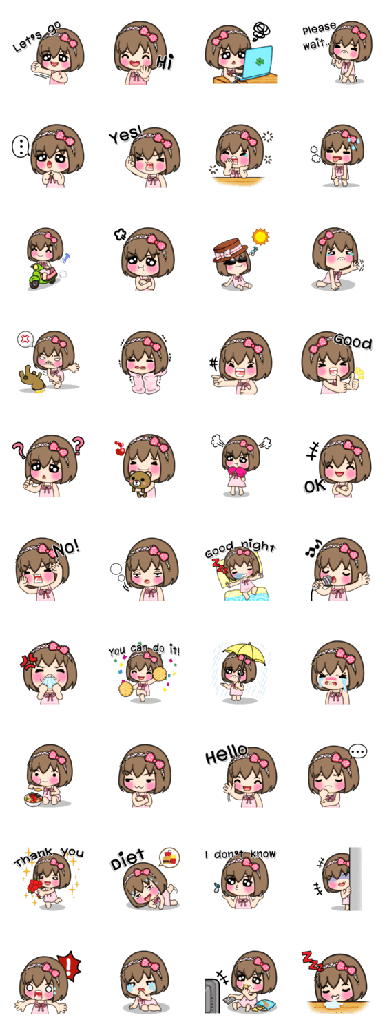 Mimi cute girl. set of stickers with cute gesture, expression of feeling. Hope you like it. And enjoy your chat!