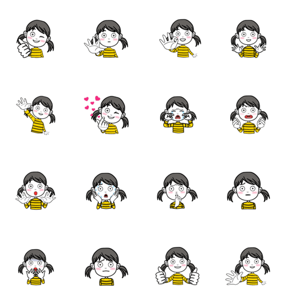 お茶目なエリちゃんの動くスタンプ「喜怒哀楽」ジェスチャーのみです。