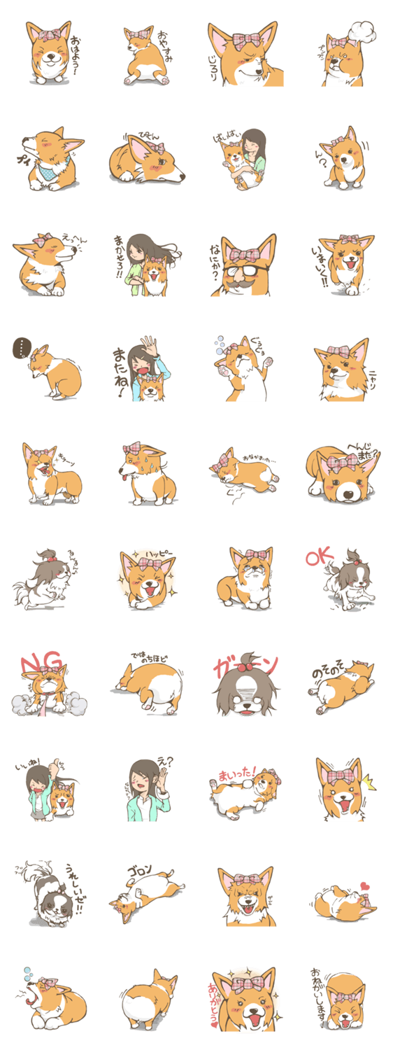 日常で使えるとってもキュートな「いぬといる生活」オリジナルキャラクターのコーギーと狆のスタンプです。