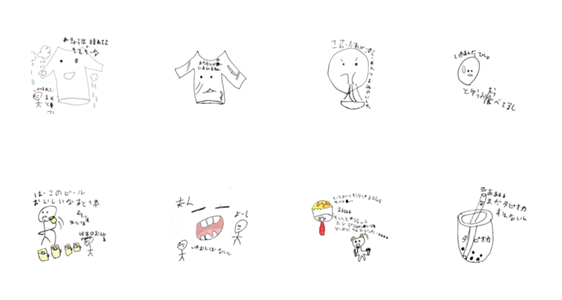 ナッツの書いた謎の絵とメッセージのスタンプ第一弾