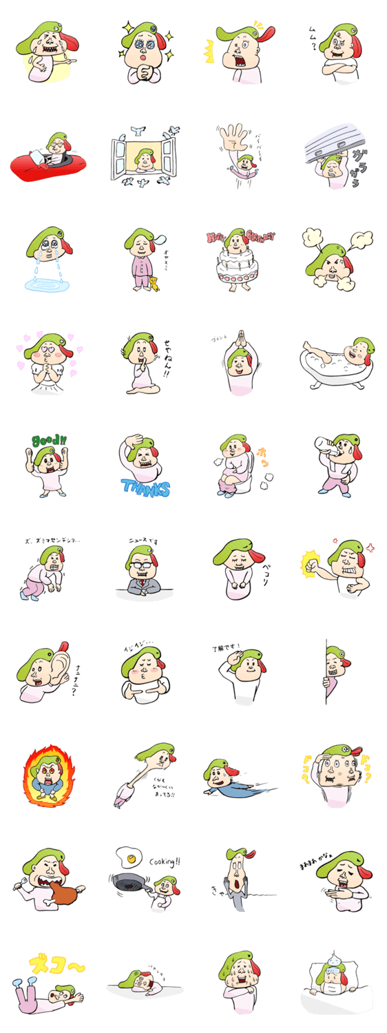 | スタンプ説明 | ‘あたまにヘビをのっけたゴリラの女のコ。名前はヘビゴリーヌ。’6歳の息子が描いたオリジナルキャラクターをスタンプにしてみました。 |