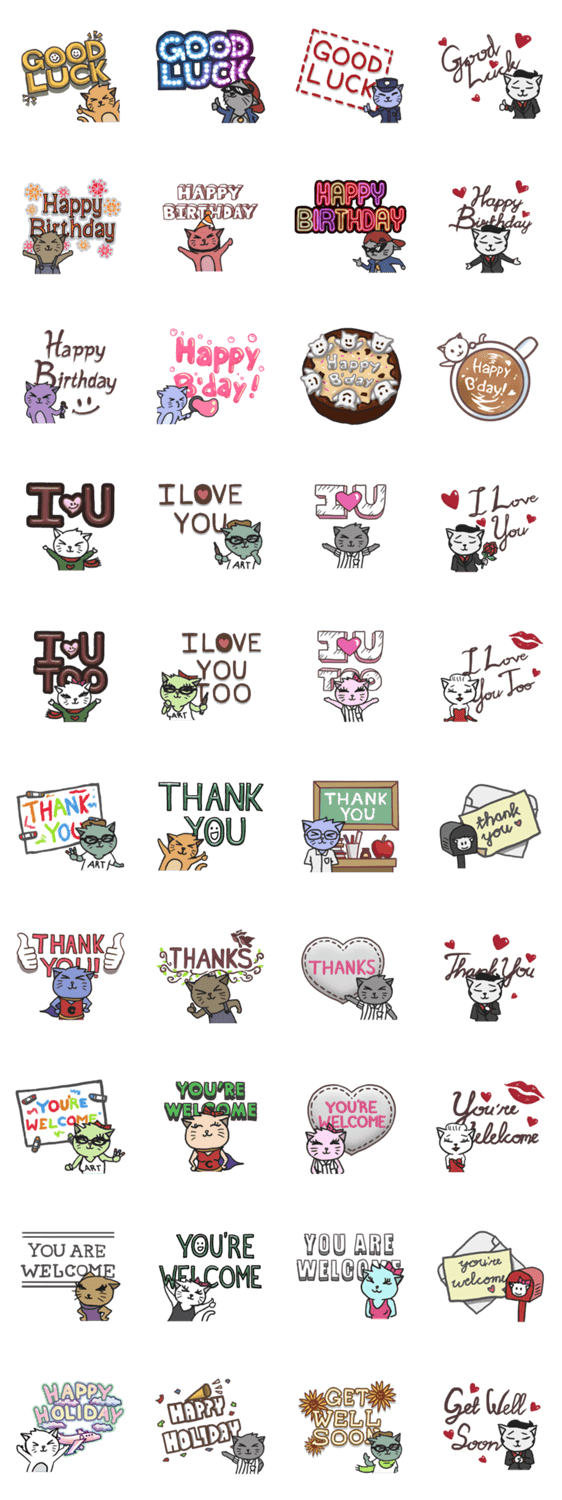Various cats greeting stickers. Share it to your loved ones! :)