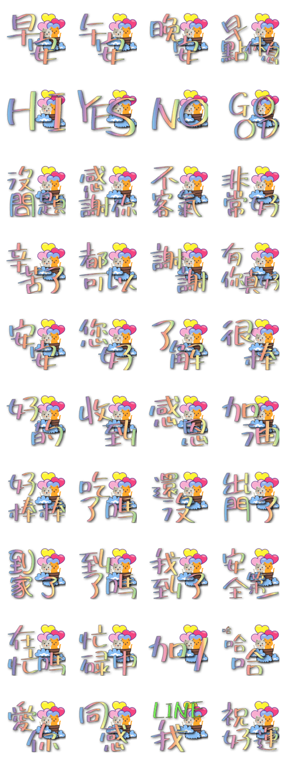 | スタンプ説明 | Cotton Cat Love Hot Air Balloon-Practical Daily Phrases in Large Characters-Colorful Words |