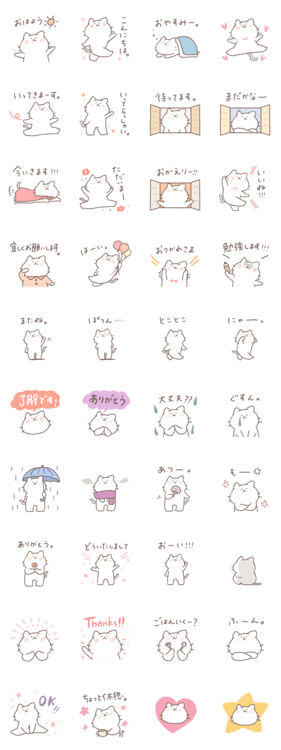白ネコのあいうえお・・・ってるスタンプ