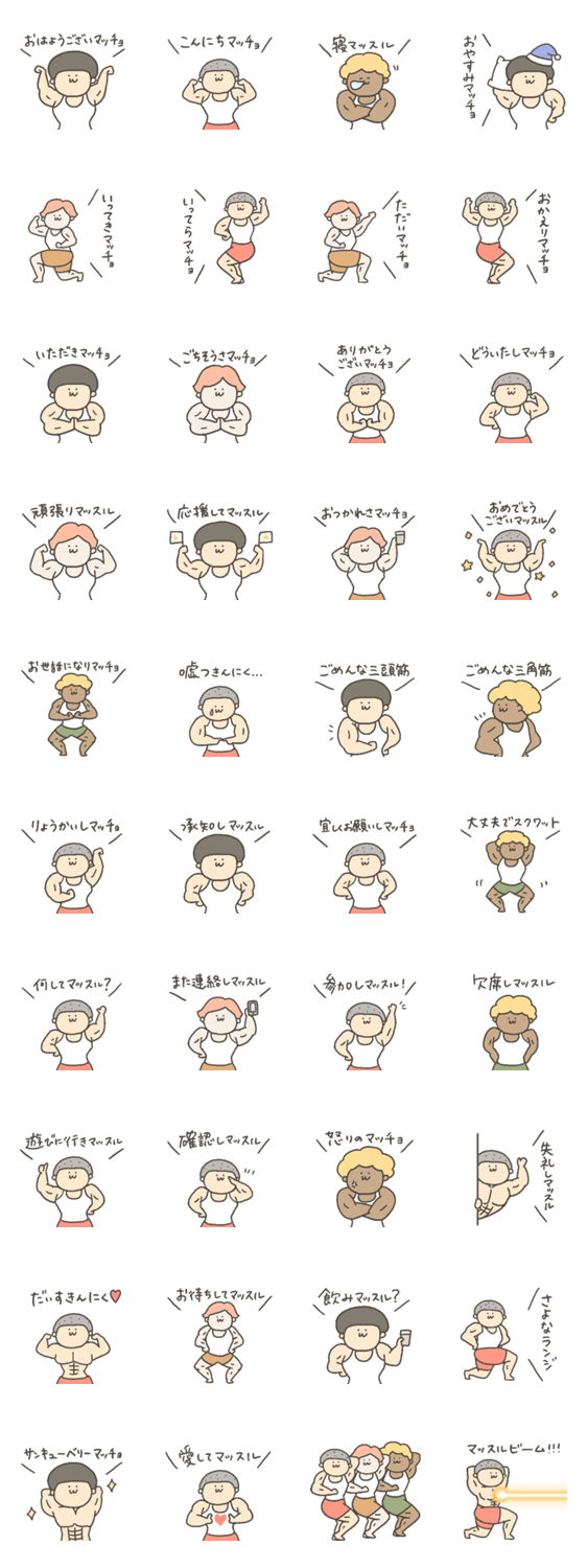 なぜか心惹かれる可愛い口元のもひもひ君たちがマッチョになって登場。筋肉、筋トレのダジャレでマッスル会話をお楽しみください。修正版。