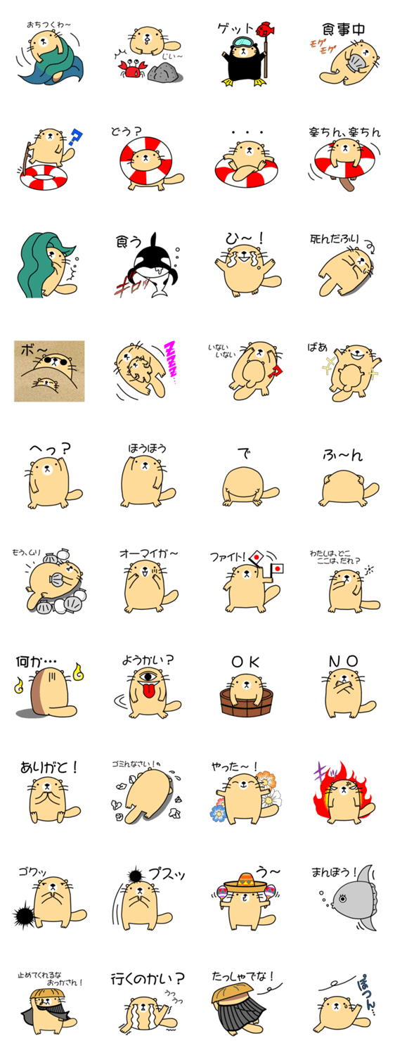まったり癒され、クスッと笑えるチョット太目のラッコのスタンプです。「何か、ようかい?」、「う~、まんぼう!」など連続して使えます。