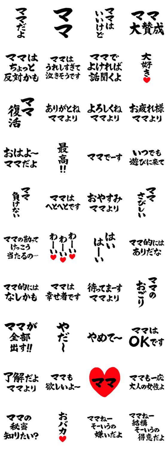シンプルな筆文字のスタンプ。ママ、母、おかあさん、まま、mother、夜のお仕事、母性ある人に。プレゼントにどうぞ。#はじめてのLINEスタンプ にオススメ