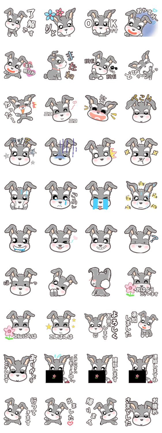 使いやすいシュナウザーです (上はフレンドリー下の方は丁寧語です) #はじめてのLINEスタンプにオススメ