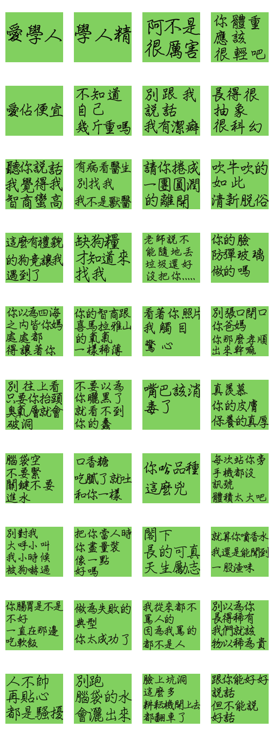 | スタンプ説明 | Choking Quotations-Large Characters on Green Background |