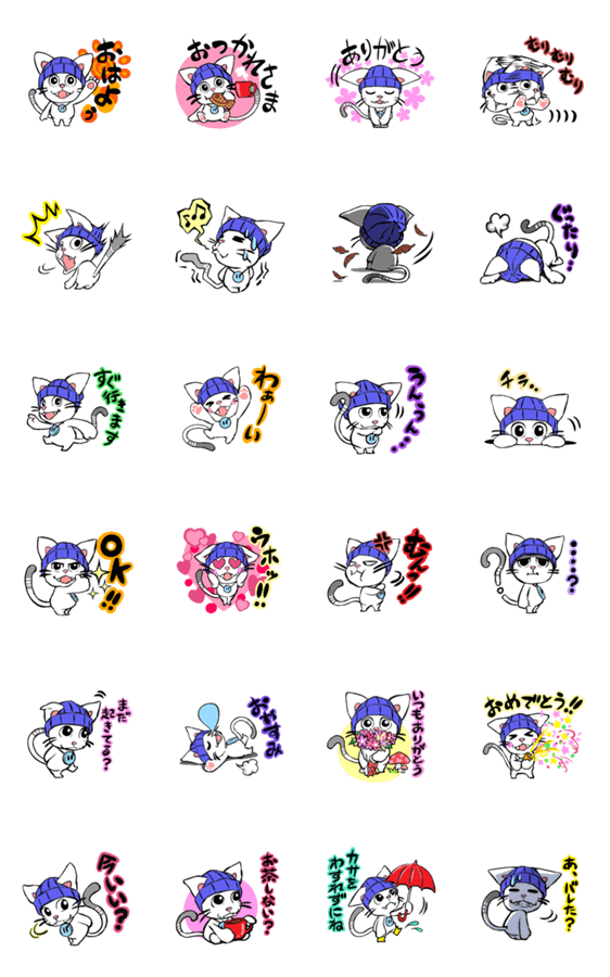 青ニット帽の白猫(日常) -LINEスタンプマニア