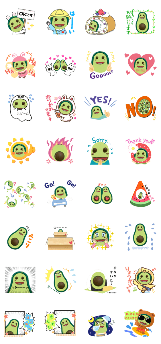 スタンプ説明 カワイイアボカド♡ドカボアイイワカ