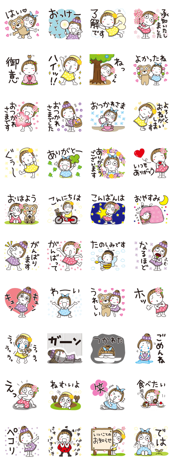 スタンプ説明 お花いっぱい。毎日日常に使えるあいさつ言葉よ。