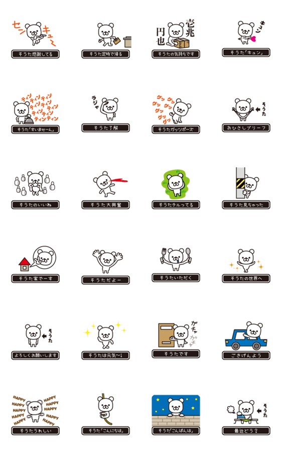 | スタンプ説明 | そうたさんが高速で動くスタンプ第五弾!ソウタ/相太/奏太/草太/想太/壮太/創太/宗田/颯汰/颯太/聡太/sotaとかが動く! |