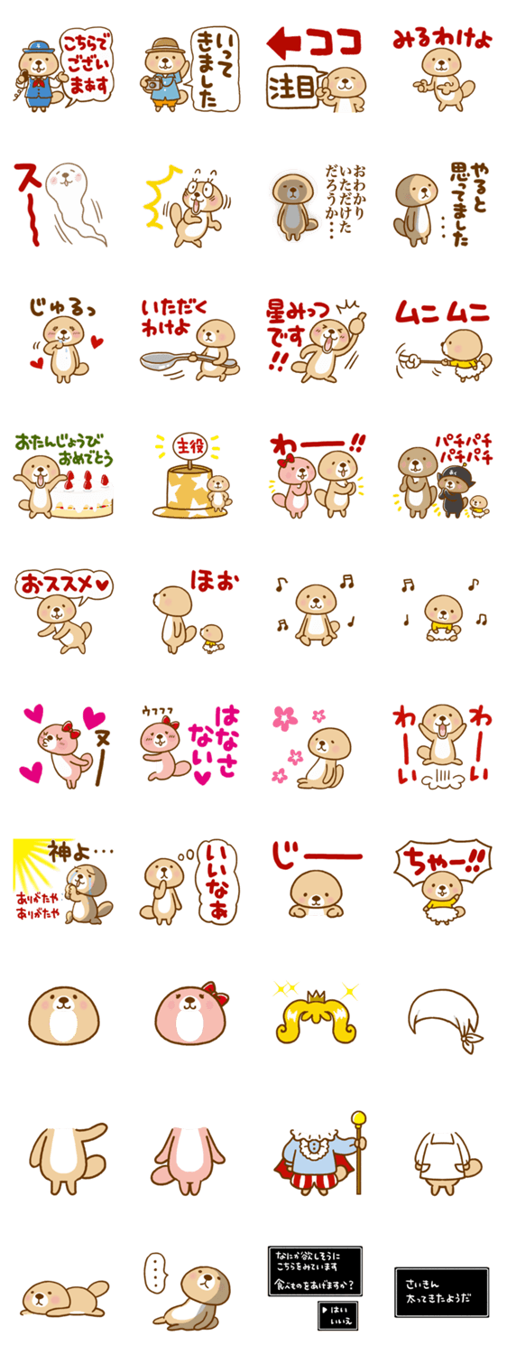 LINEで写真や動画に貼って遊べる楽しいスタンプです。ラッコさんに変身できたり肩に乗せてみたりしがみついたりお料理に添えてみたり。写真を楽しく装飾しましょう。