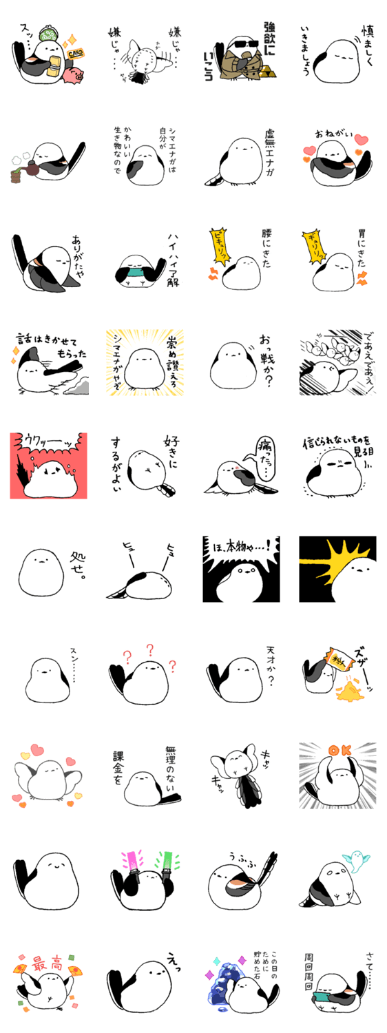 推し活に励むシマエナガのスタンプです。あるときは課金、あるときはシマエナガのかわいさを武器に戦います