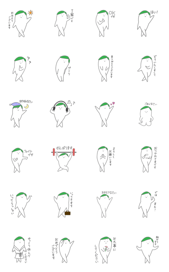七三分けのだいこんが挨拶するちょっとシュールなスタンプ。敬語で丁寧なシーンに使えます。