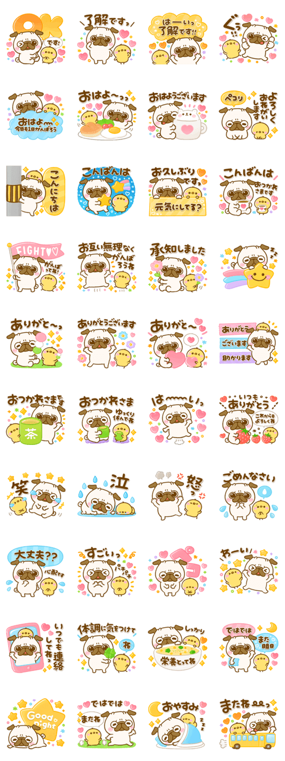 パグちゃんのカラフル可愛い♪毎日使えるスタンプです♪ 犬