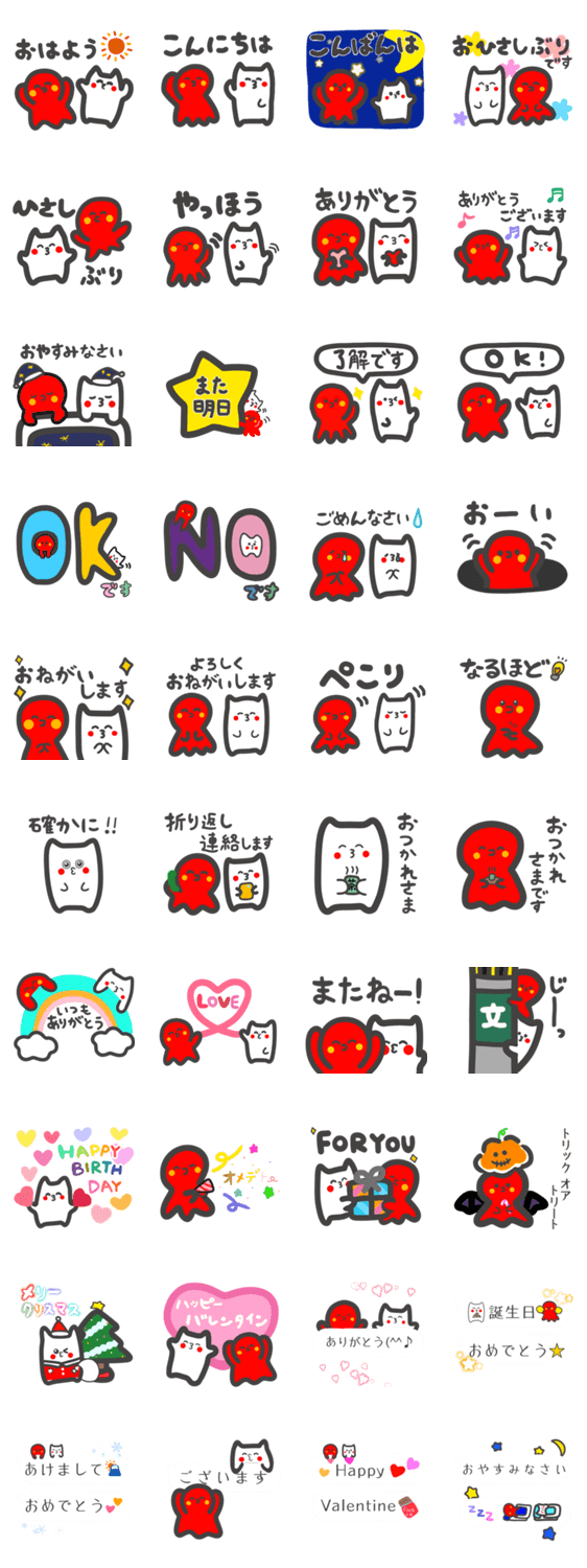 たこちゃんとうさぎのスキスーの挨拶ラインスタンプです♪ 敬語や吹き出しのスタンプもありますので使いやすいです☆