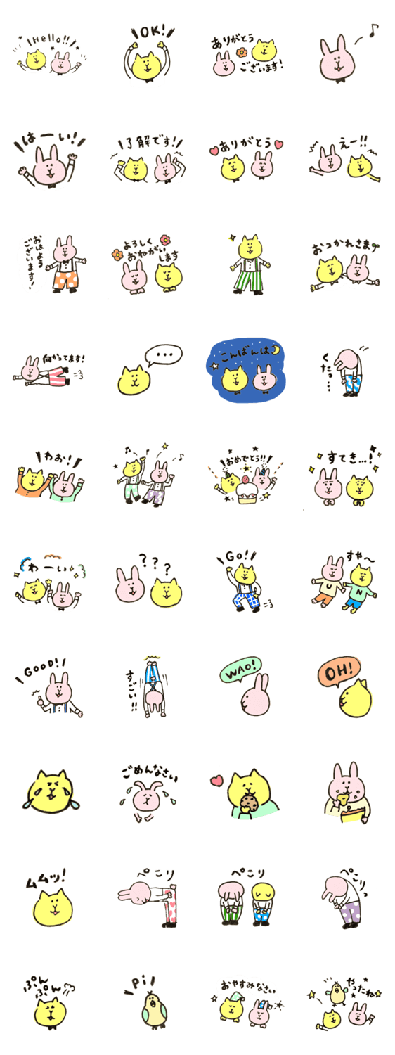 うさぎのうさしと、ねこのねこふみのスタンプです。 #はじめてのLINEスタンプにオススメ