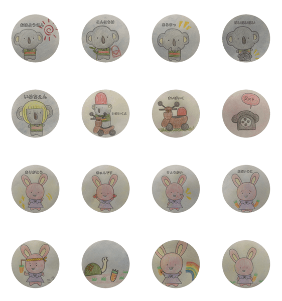 クレパスで描いています。スタンプを送る人はもちろん、受け取った人も優しい気持ちになれるスタンプです。#はじめてのLINEスタンプにオススメ