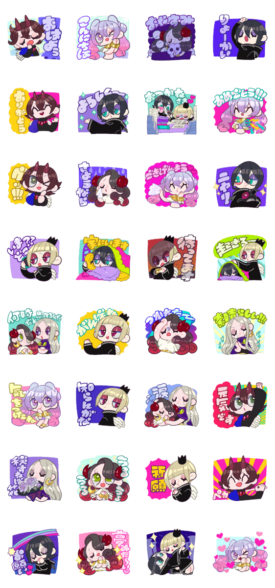 サタンちゃんシリーズ第4弾! カートゥーン風のかわいい悪魔たちのスタンプ。