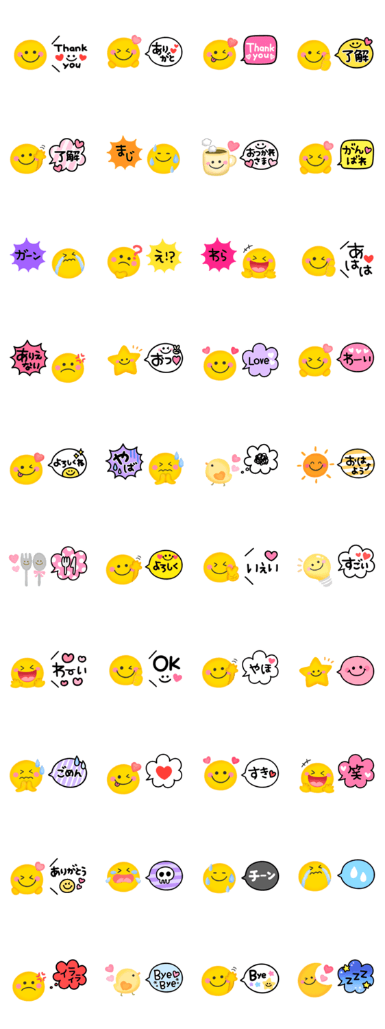 スマイルニコちゃんのいろんな表情とよく使う日常言葉の吹き出しセットです♪ かわいい/家族/カップル/大人可愛い/ガーリー #はじめてのLINEスタンプにオススメ