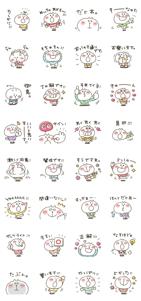 元気いっぱい!表情豊か!ねこぴのスタンプ第7弾は、肯定する言葉を集めました。何を言われても否定はしないよ!