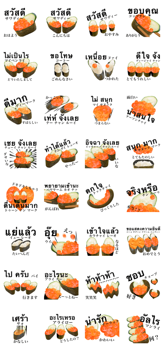 大粒いくらです タイ語 キュウリ 寿司 -LINEスタンプマニア