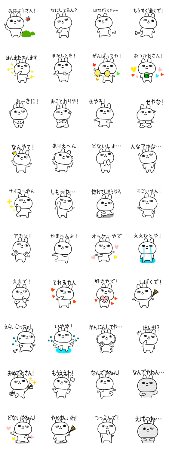 しろくてまるい関西弁うさぎウサギ兎の毎日日常で使えるスタンプです もるきゅた作