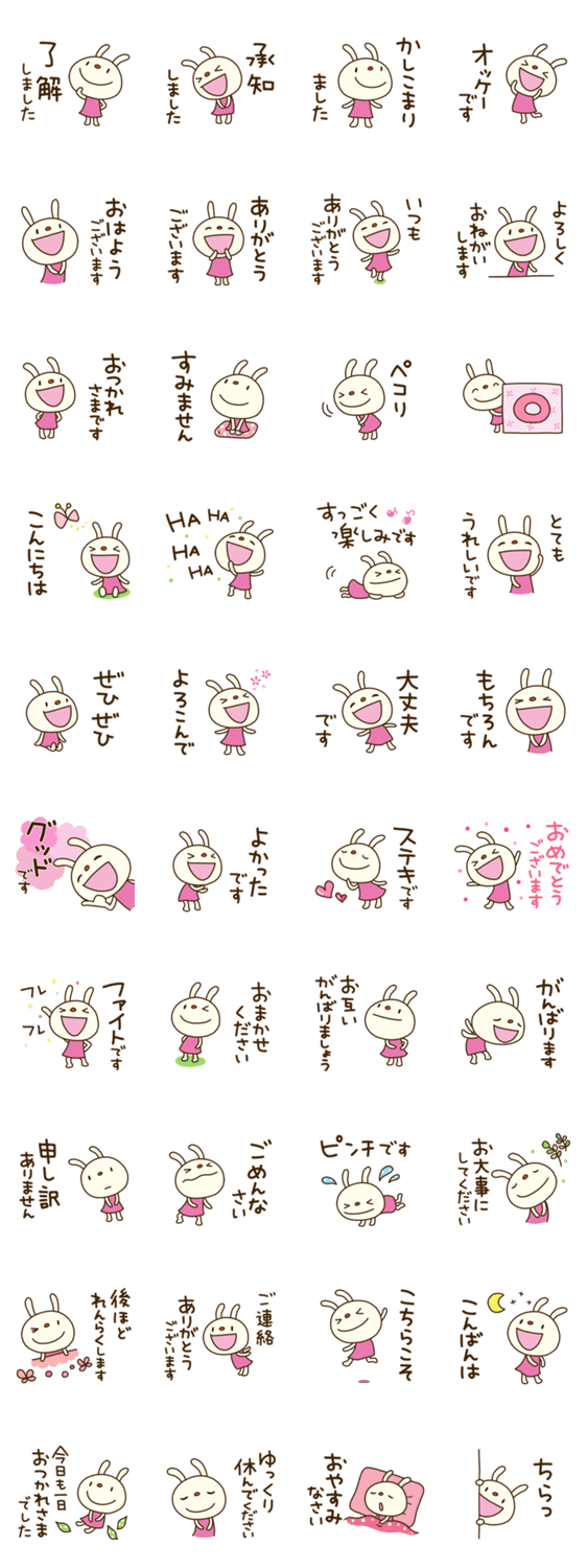 | スタンプ説明 | てるてるうさぎ。敬語編。「すみません」「承知しました」から「グッドです」まで。てるてるうさぎで、丁寧なメッセージを届けよう。家族、学校、お仕事でも。 |