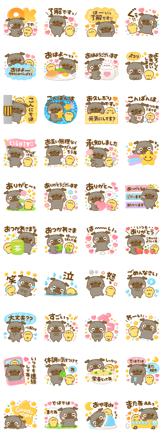 黒パグちゃんのカラフル可愛い♪毎日使えるスタンプです♪ 犬