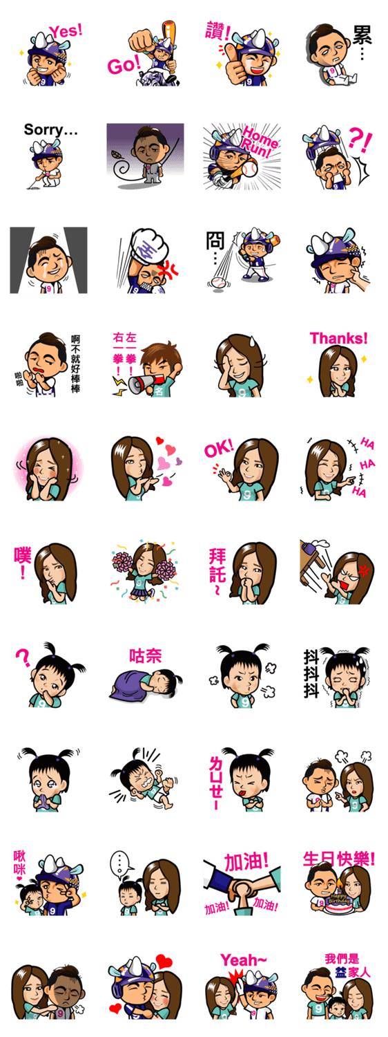 | スタンプ説明 | Chuan-Chuan,Chia-Chia and some shrimroll are lovely family.Like baseball of you are also to can not miss a baseball family |