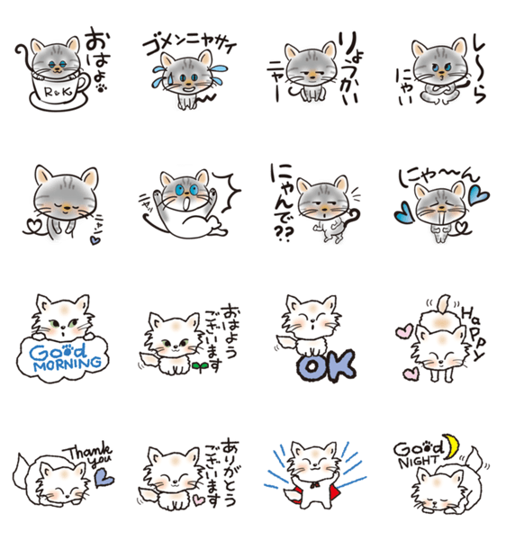 「かわいい猫。レオ&きなこのスタンプ、できたよー!」