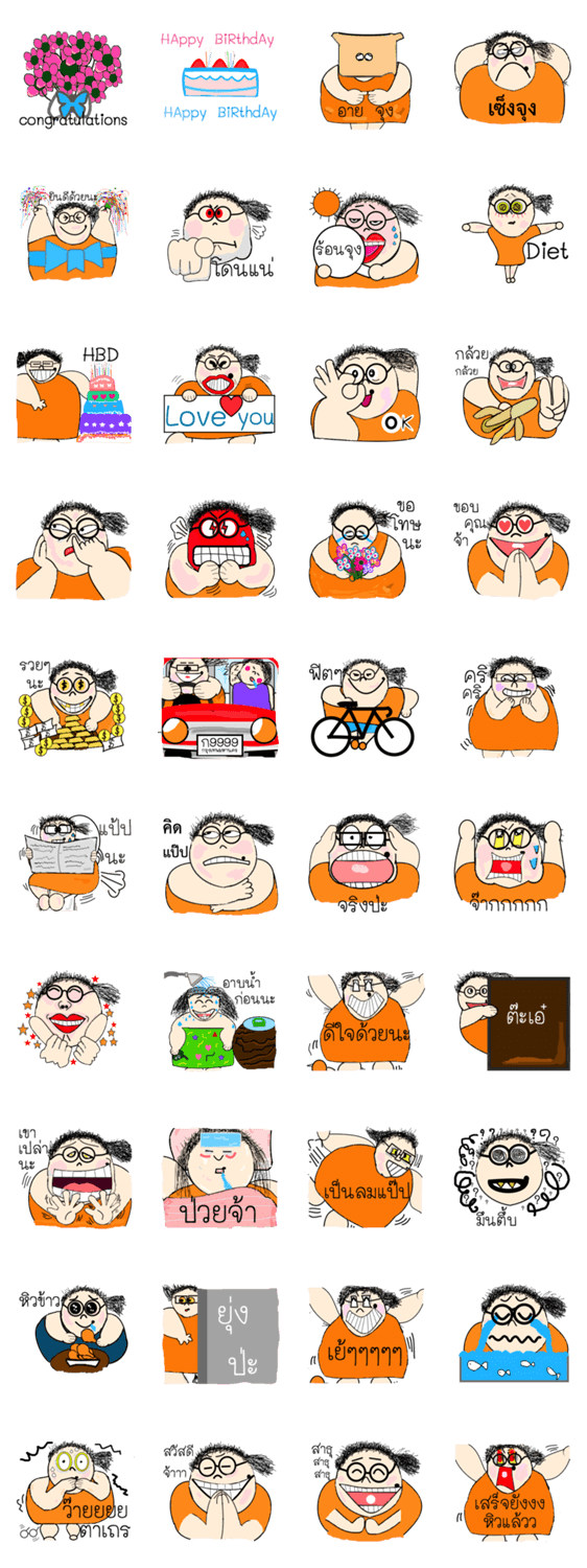 Funny girl with mole. She has annoy emotion all times.But she has highly intention. You can find cute and vary emotion in this line sticker.