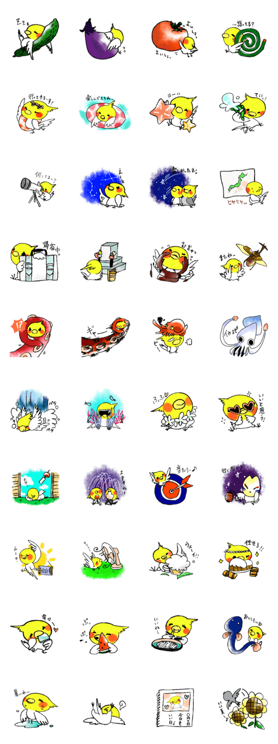 いつも元気いっぱい、おてんばオカメインコちゃんが夏を楽しく表現。今年も暑い夏を元気に乗り切りましょう。