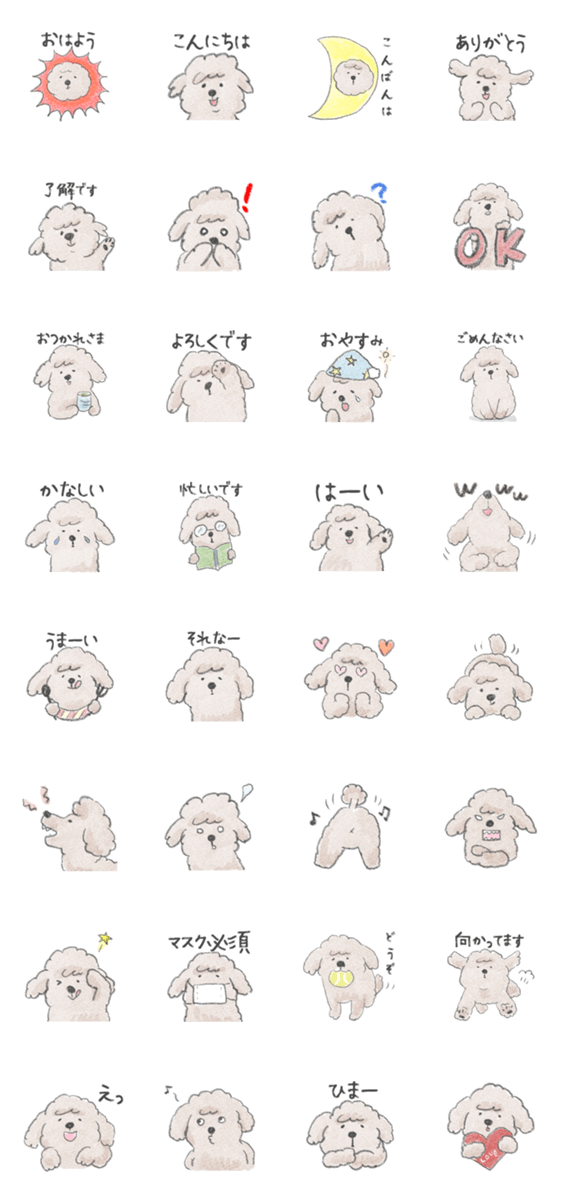 | スタンプ説明 | トイプードルのゆるいLINEスタンプです。 シンプルで少し小さめ。 |