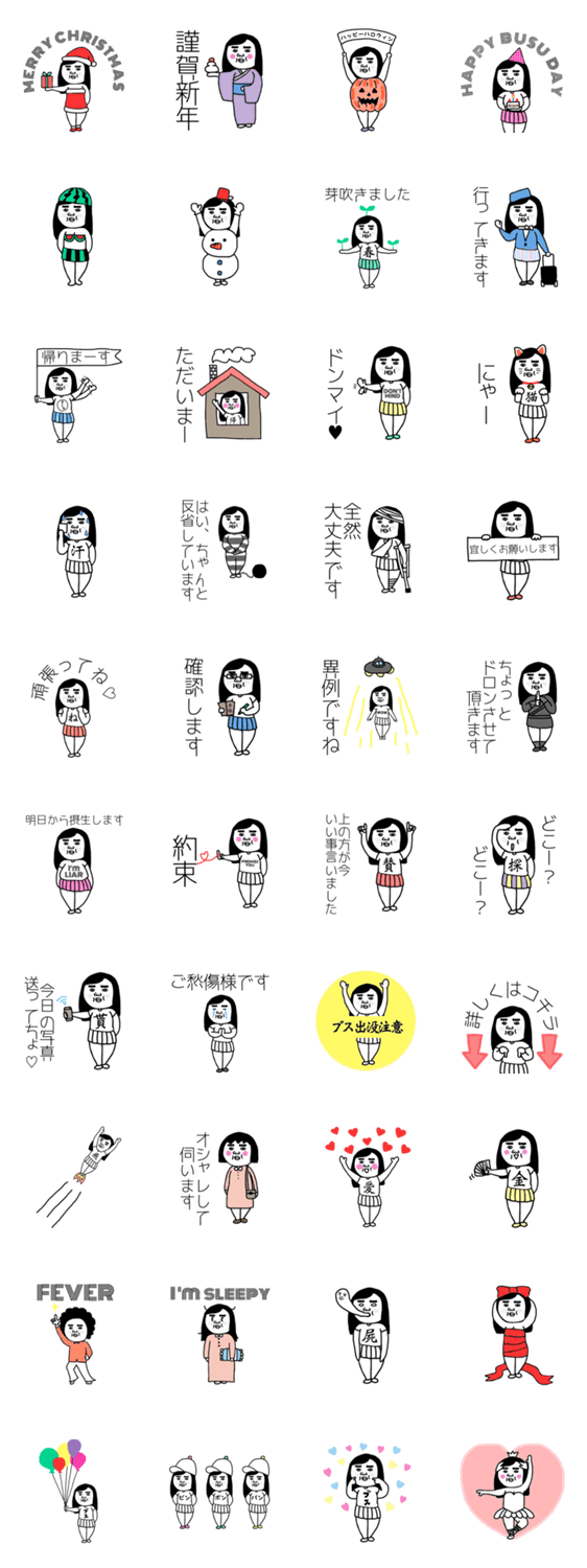 | スタンプ説明 | めんこいブスがまたまたまたあなたに代わって気持ちをお伝えします。 |