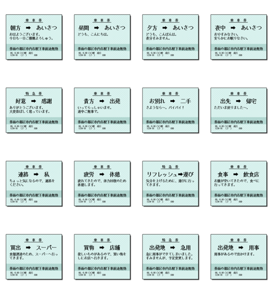 電車の乗車券のパロディです。日本の駅の窓口で飼うタイプです。