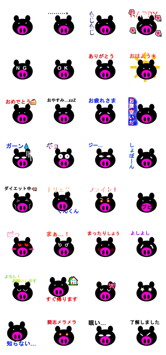 黒豚くろぶーのヘタウマでかわいいスタンプです。ほっこり癒されること請け合いです。