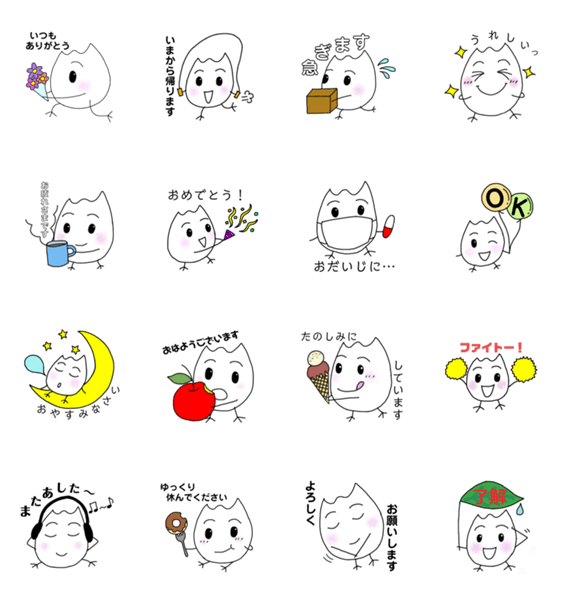 お米から生まれた癒し系キャラクター。挨拶やお返事など普段使いできる便利なスタンプです。