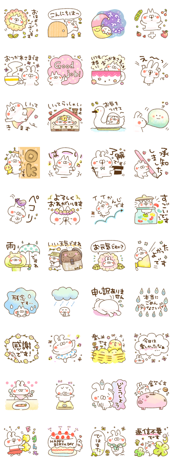 | スタンプ説明 | ねことうさぎの名前スタンプシリーズ。ほのぼの、ほんわかした敬語・丁寧語のスタンプです。山田まぽん作。 |