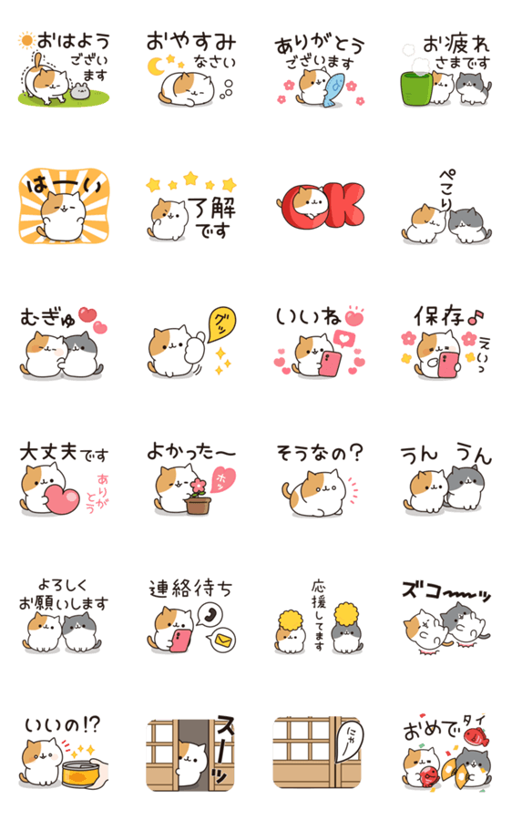 今日も今日とて猫らしくのびのび生きている元気でかわいいぶちねこ達のアニメーションスタンプ第4弾です!