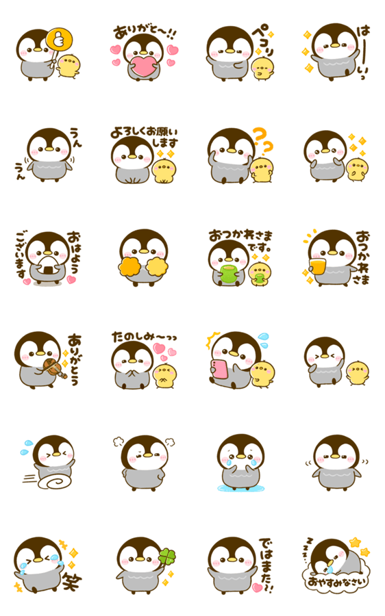 小さな赤ちゃんペンギン、ぺんぺんのリアクション豊富でよく動くアニメーションスタンプです♡毎日の会話に役立つ動きや相槌がいっぱいです♪ ぺんぎん