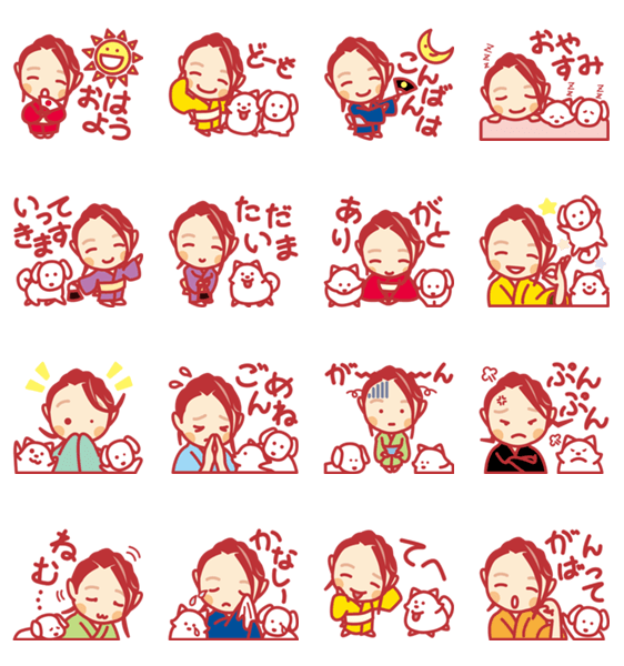 日本舞踊家「閑崎扇ひで」のスタンプです。可愛い飼い犬と一緒に登場!地唄舞を中心に様々なアプローチで和の文化を広げるべく活動中の舞踊家です。作:迫水ヒサ