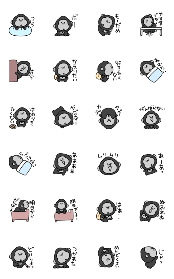 やる気が出ない☆動くシュールなミニゴリラ -LINEスタンプマニア