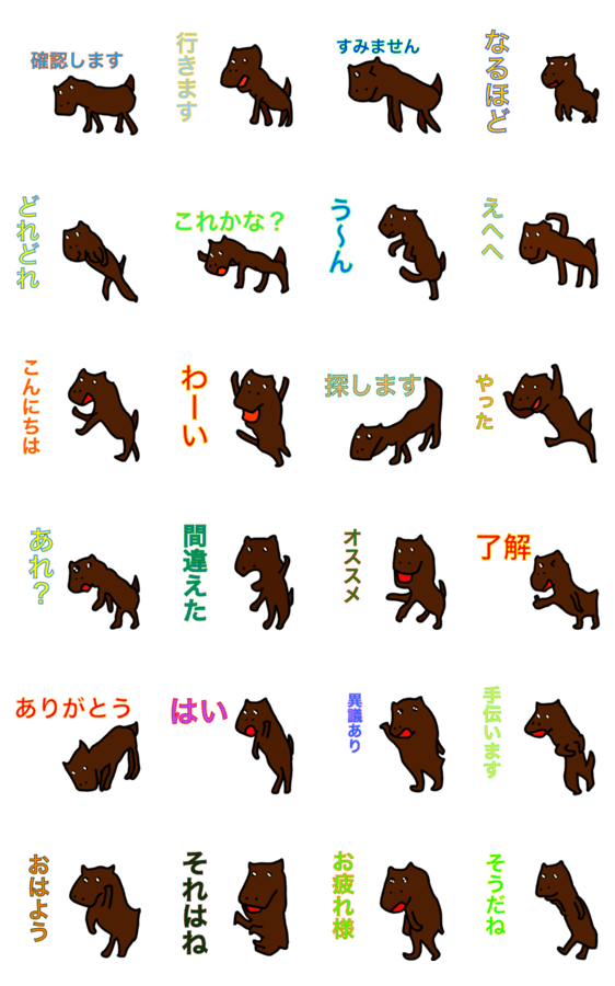 スタンプ説明 茶色のシンプルな馬のキャラクターです。