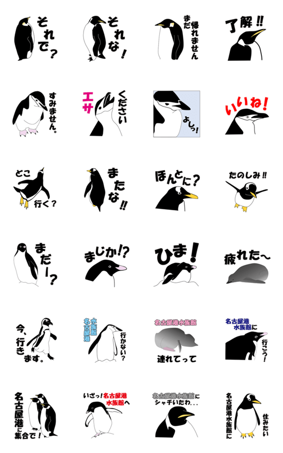 名古屋港水族館のペンギンたちをモチーフにした公式LINEスタンプです。日常のコミュニケーションにぜひお使いください。