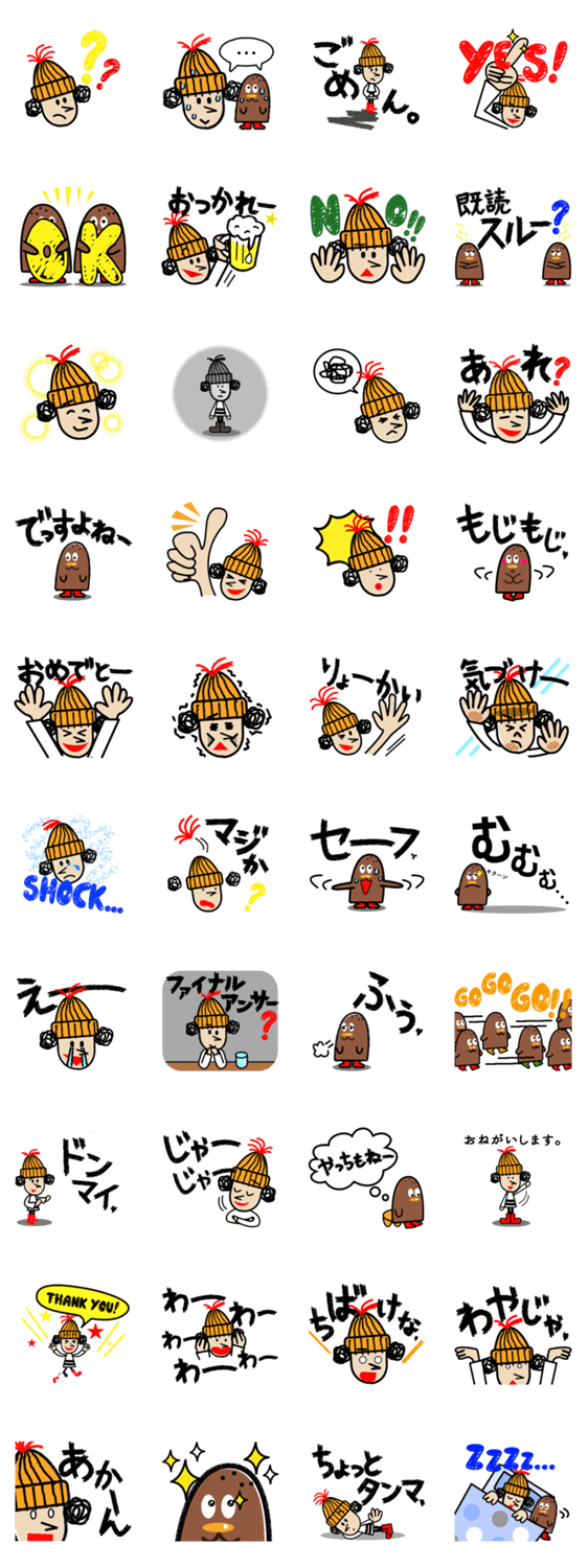 トレードマークは黄色のニット帽。あわてんぼうスージーが、クールな相棒ジョニーと魅せる、使いやすくてキュートなラインスタンプ。ちょこっと岡山弁入り。