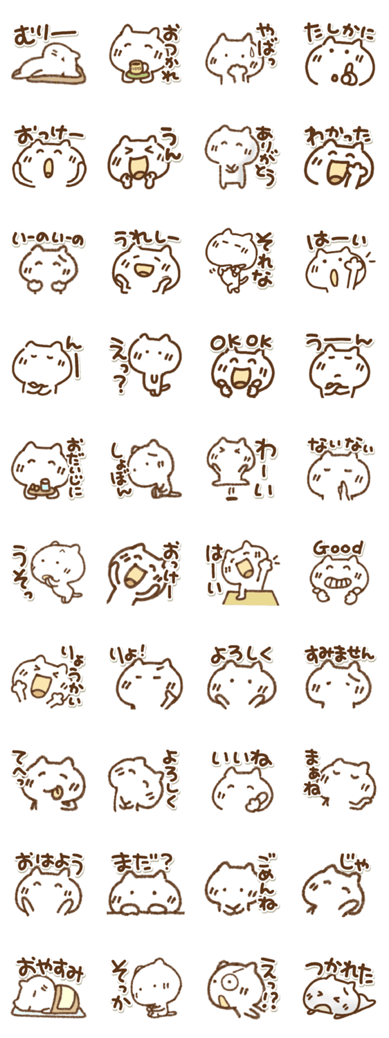 大きなねこと文字でシンプル見やすい分かりやすい。毎日使える挨拶やリアクションがいっぱいです。